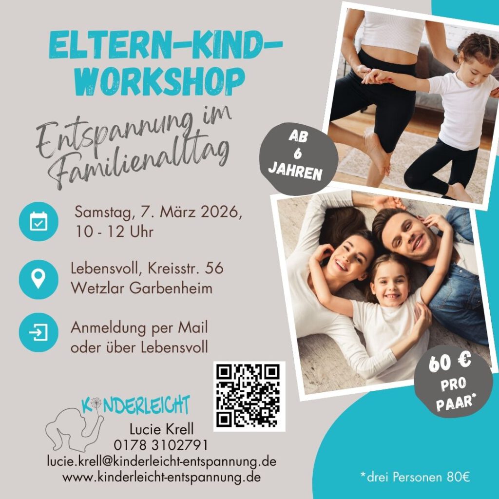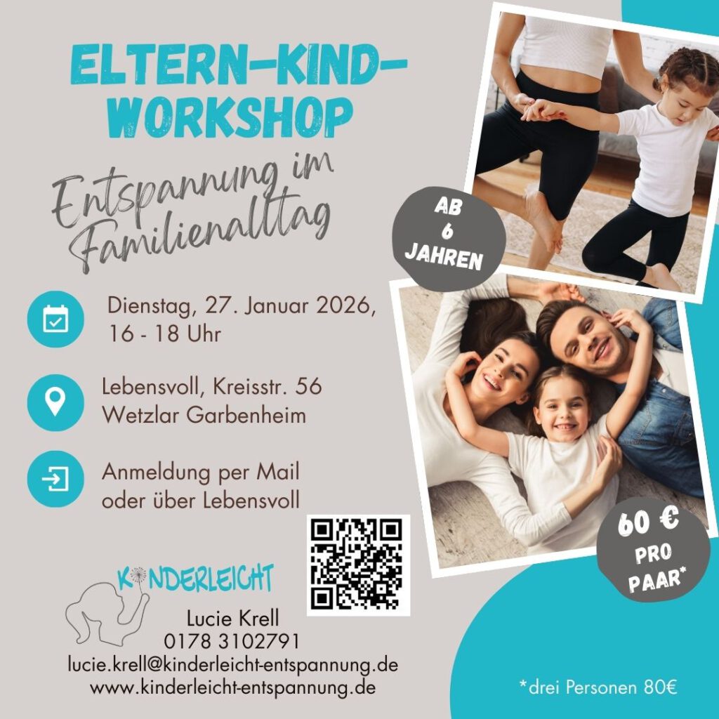 Details zum Kurs: https://www.lebensvoll-familienbegleitung.de/angebote/workshops/eltern–kind-entspannungsworkshop/